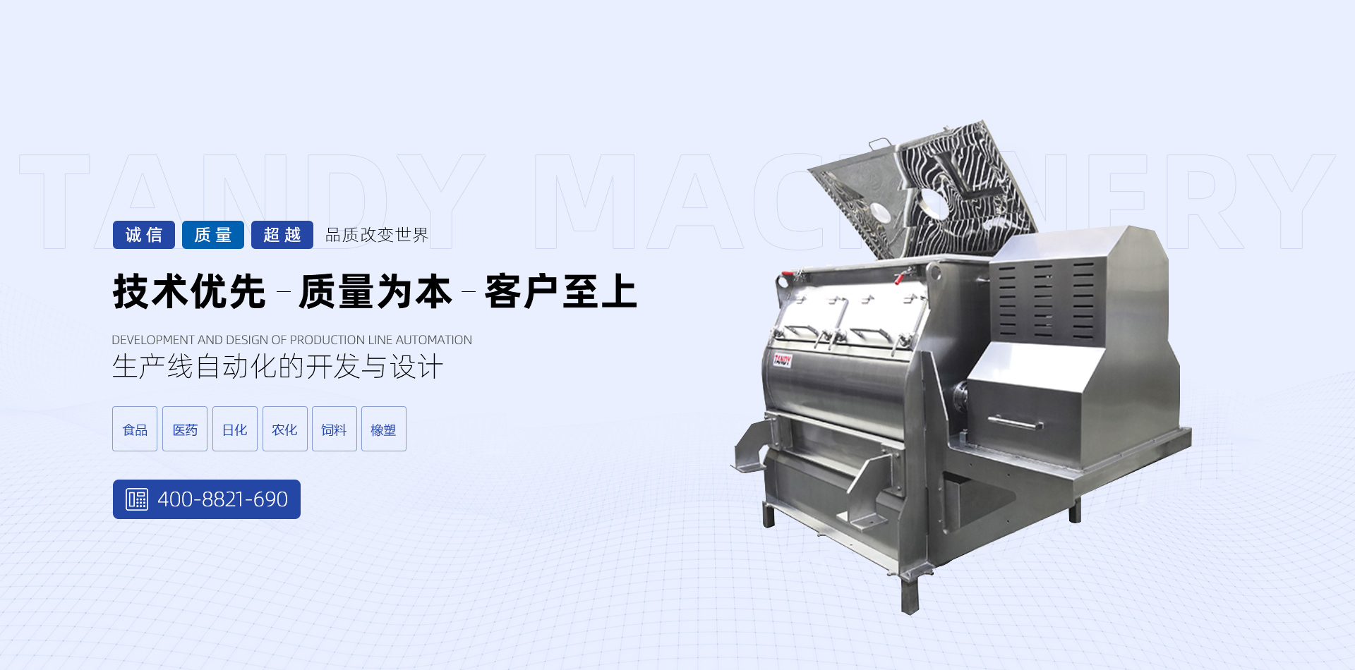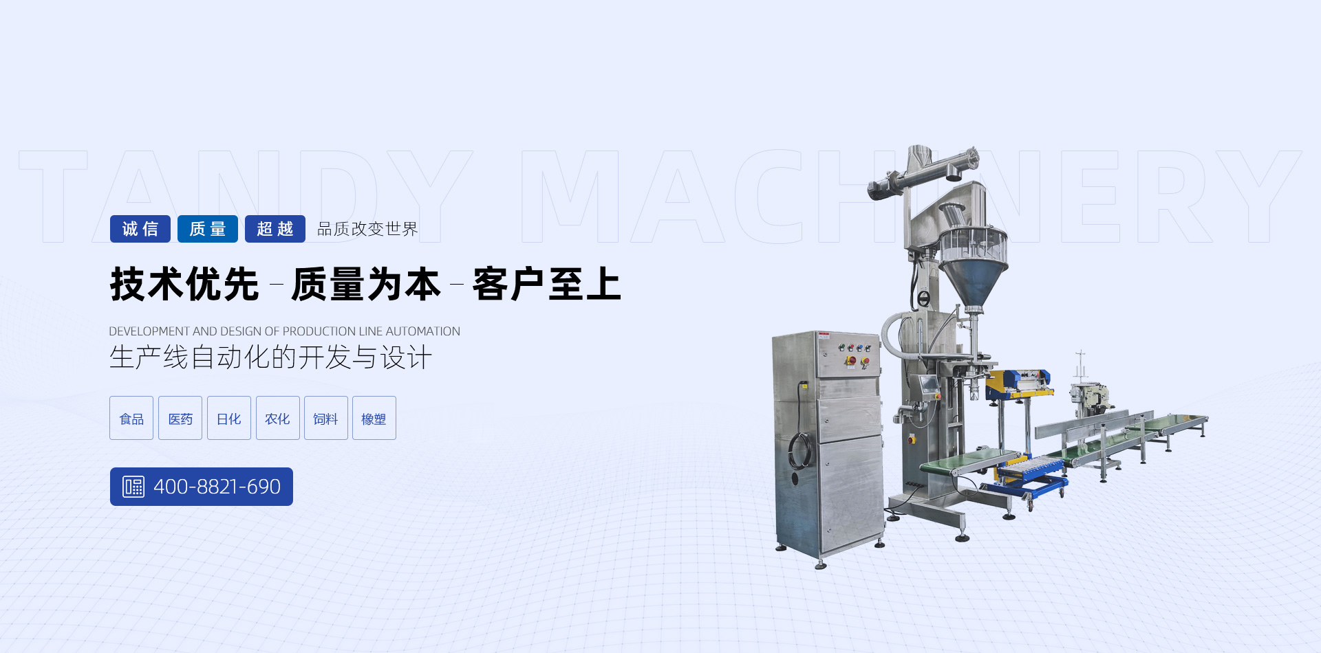 唐迪機械秉著“腳踏實地,實業強國”的思想,致力于粉體自動化工程設計與制造,憑借強大的技術力量與售后支持,唐迪機械不斷開發出更多優質的產品,得到眾多客戶及同行的肯定與厚愛。